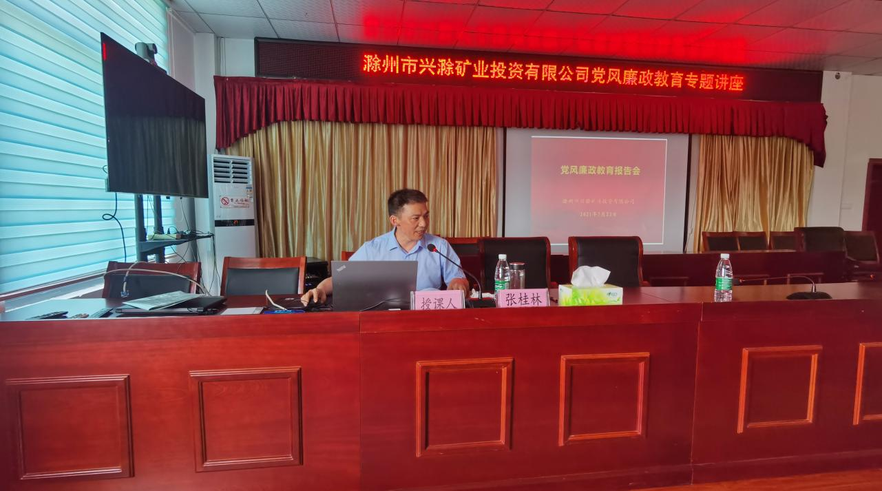 為進一步推深做實黨史學(xué)習教育,切實加強公司黨風廉政建設(shè)和反腐敗工作,促進黨風廉政教育在基層一線落地生根,7月23日,市礦投公司邀請市紀委監(jiān)委駐市財政局紀檢監(jiān)察組副組長張桂林赴興明礦業(yè)調(diào)研指導(dǎo)并作黨風廉政教育專題講座。公司經(jīng)營層及相關(guān)工作人員約30余人聆聽了講座。