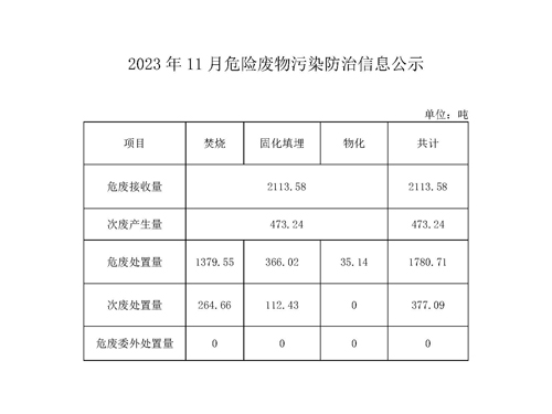 2023年11月危險廢物污染防治信息公示