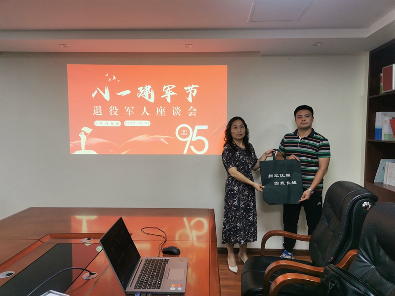 集團(tuán)公司黨委委員、黨支部書記向集團(tuán)公司本部退役軍人表示節(jié)日的問候和美好祝福,對退役軍人做出的成績給予充分肯定,同時(shí)勉勵(lì)他要退役不褪色,繼續(xù)弘揚(yáng)“八一”精神,扎扎實(shí)實(shí)做好本職工作,為公司發(fā)展作出更大貢獻(xiàn)。