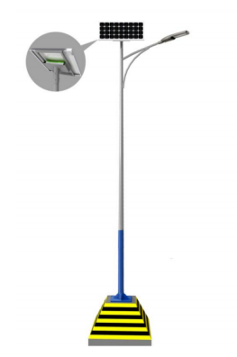 | 5 | 燈桿(含支架) | 高7米,錐型A字臂燈桿,燈臂長1.2m,上口徑70mm,下口徑160mm,壁厚不低于3mm,上白下藍(lán)。 材質(zhì)采用Q235碳鋼,熱鍍鋅表面靜電噴塑,內(nèi)外表面防腐處理。 法蘭為320mm*320mm*12mm,預(yù)埋件4-M18*280*750。 |